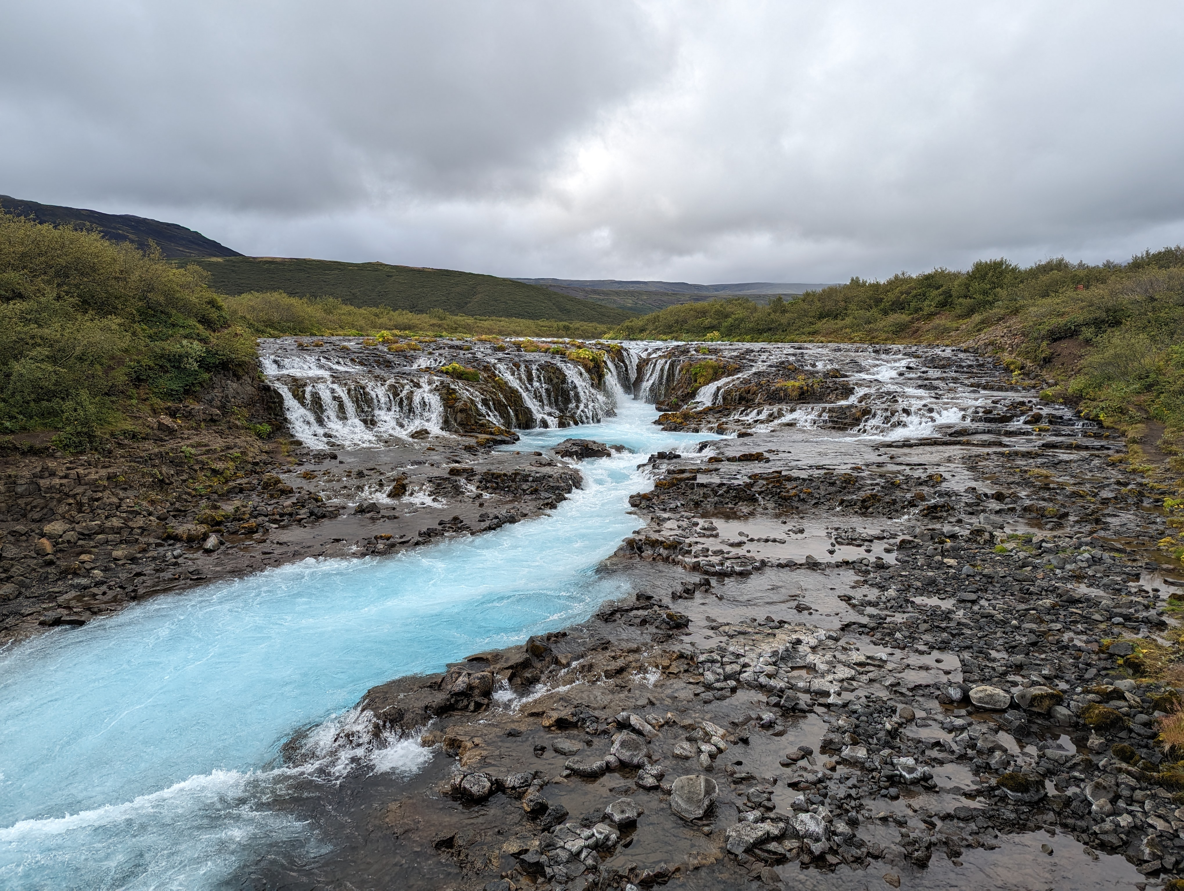 En fin d’après-midi, nous prenons la route en direction de l’est. Nous nous arrêtons à la cascade Brúarárfoss, qui se trouve dans une gorge étroite. Nous sommes ensuite impressionnés par les geysers de Geysir, dont Strokkur, qui entre en éruption toutes les 5 à 8 minutes.